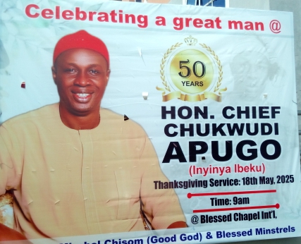 As family, friends,followers and well -wishers gathered today, Sunday 18th May, 2025 at Blessed Chapel International Church Umuahia for thanksgiving service to mark Hon Chukwudi Apugo 50th birthday and subsequently the real entertainment and celebration galore took place at the celebrant home town Nkata Ibeku